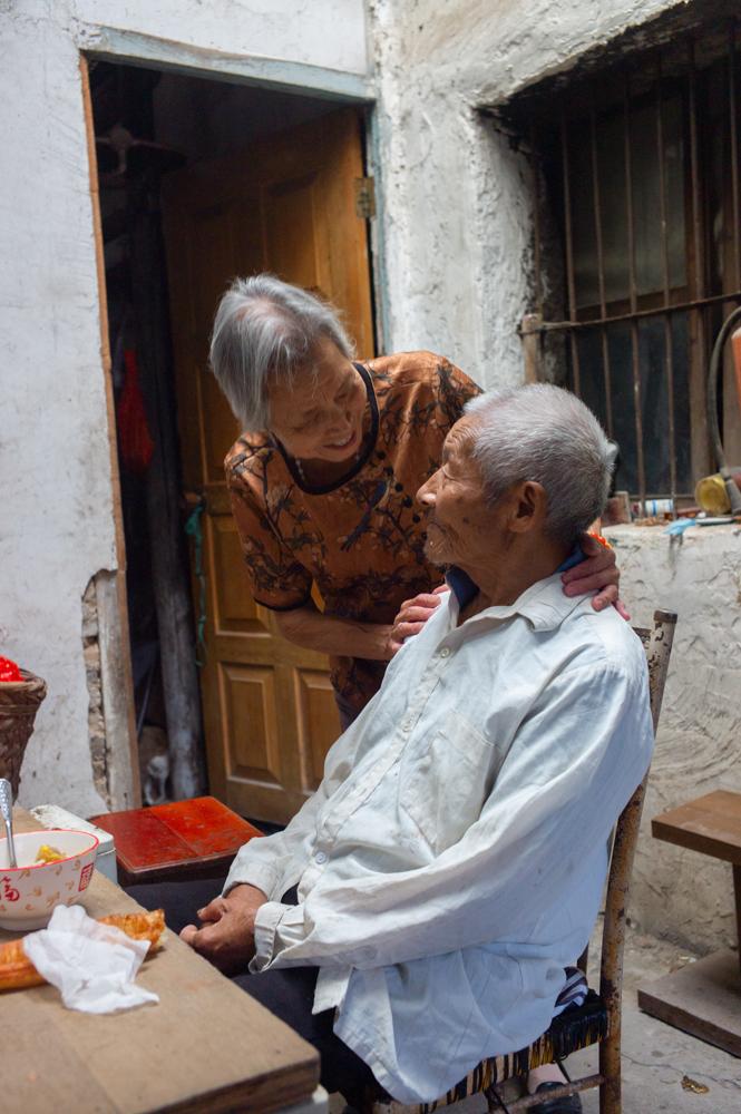 次日清晨七点多我才起床,母亲早已备好热腾腾的早饭。饭后,我提议去探望三娘舅、三娘妗和小娘妗。出门采购时,母亲说她心里有数,不让我插手挑选,我便顺从地跟在她身后。房车停稳后,我先下车准备扶母亲,她却在车里细心挑选要带给三舅的东西。几分钟后,我扶着她下车,见她双手提着物品,便赶紧接了过来。我俩沿着小径走到三舅家,只见94岁的三舅正独自在小木板上吃早饭。他穿着件泛旧的白衬衫,精神却尚可,见我们到来,神情没太多变化,只是静静看着我。母亲扶着他的肩膀问:“还认识我吗?”三舅摇了摇头。我指着母亲再问,他却立刻应道:“这是红英嘛!”2023年我曾在三舅院里住了半年,朝夕相处,可仅仅两年过去,他已明显苍老许多,状态远不如前。但这位九旬老人,满头白发依旧浓密,面色红润,神态温和又透着刚毅,衣着朴素却难掩昔日的公子气质。看着兄妹俩闲聊,平日里没什么表情的他,脸上也渐渐露出了笑容。告别三舅和三娘妗,我们又驱车前往东山头柯桥头看望小娘妗。几分钟后抵达,沿着小径往小舅家走时,远远便看见小娘妗坐在路边与邻居闲聊。她望见我们,立刻笑着打招呼,随后引我们进屋。我走进熟悉的卧房,发现窗边的窄床换成了宽床,老房子里东西虽多,却收拾得整整齐齐。两位老人坐在床边闲谈时,我按惯例去周边邻居家转了转,随手拍了些乡村景致。