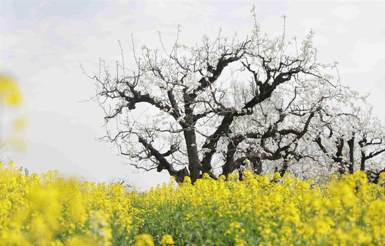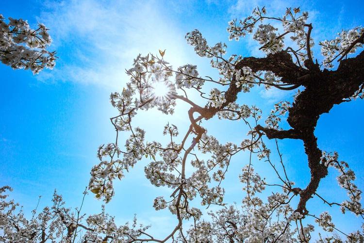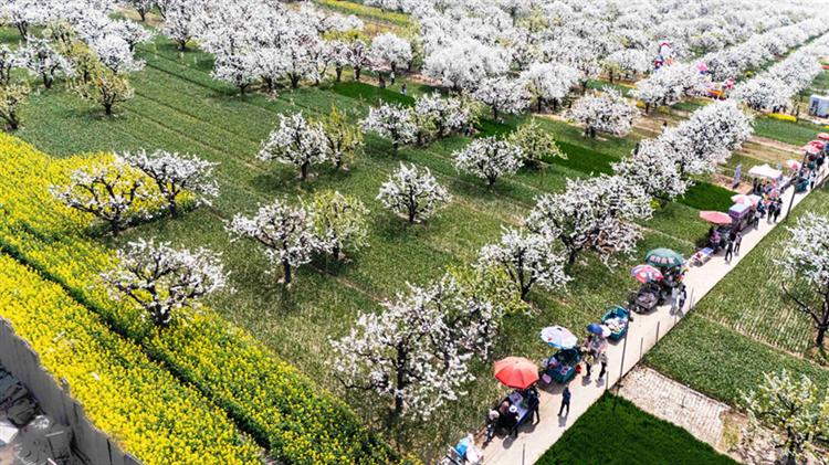 春风拂过,原阳宣化寨百年梨园梨花盛放,千树万树如雪覆枝,暗香浮动,尽展中原春日诗意。